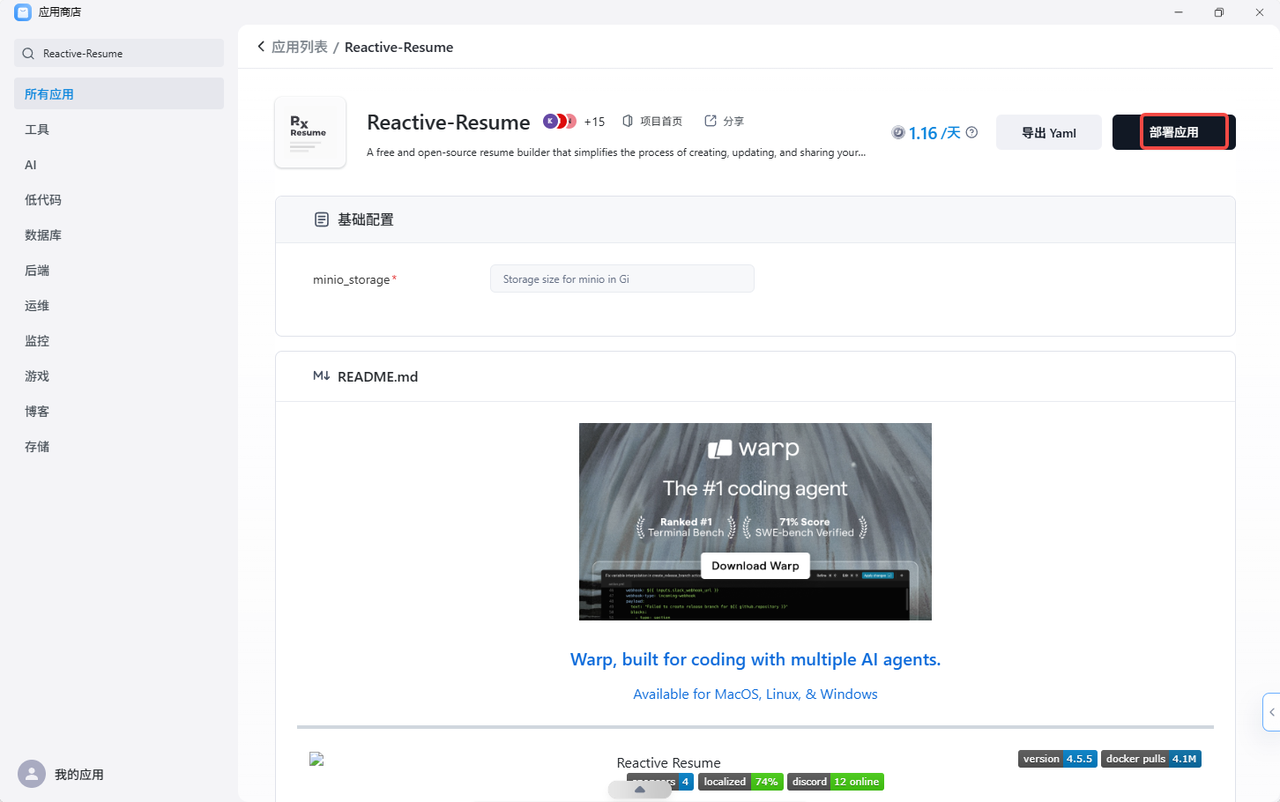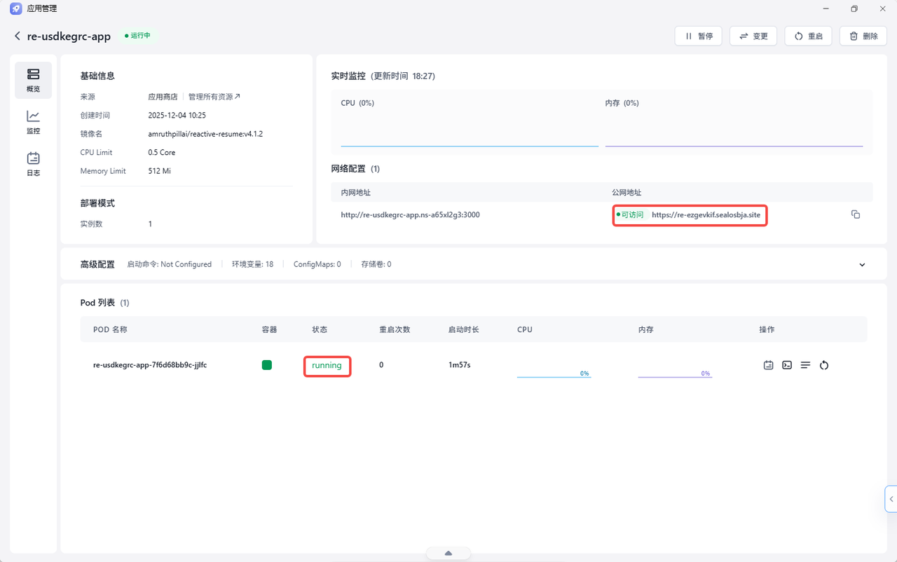 幸好,Sealos 应用商店让“拥有自己的简历神器”这个梦想,变成了 3 分钟就能实现的现实。