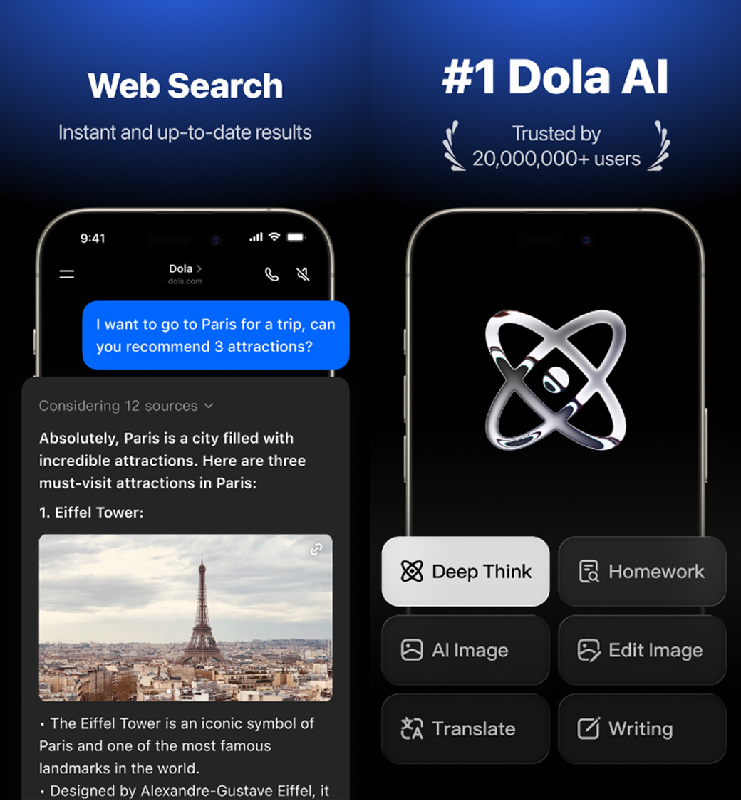 字节跳动旗下面向海外市场的AI助手应用Dola日活跃用户数已突破千万。Dola主打对话问答、写作翻译与图像能力,在Google Play中定位为写作、思考与创作的一站式助手。该产品于2023年8月以Cici名义推出,主要面向菲律宾、印尼及拉美市场,2025年底更名为Dola,并在印尼、马来西亚、墨西哥等地取得显著增长。这一成绩标志着字节跳动在海外AI助手市场的快速发展。