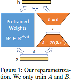 引入低秩矩阵A和B:训练时,我们只更新这两个小矩阵。其中,B * A 的结果就是我们学到的“知识增量”ΔW。
