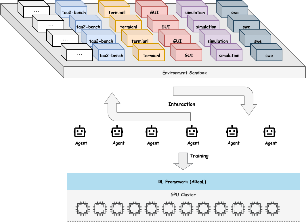 AEnvironment是 ASystem 专为 Agentic RL 打造的基础设施。它通过标准化的 MCP****协议和高性能的 ASandbox 运行时,将原本复杂的环境搭建从“写脚本”变成“调服务”。在蚂蚁内部,AEnvironment 与 AReaL 深度协同,打通了从“训练”到“部署”的全链路。我们希望通过 AEnvironment,为业界大规模 Agentic RL 开发提供更具生产力的基础设施。欢迎加入我们,打破环境壁垒,构建共赢的智能体生态。