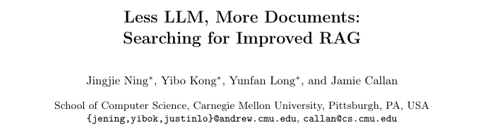 - 论文标题: Less LLM, More Documents: Searching for Improved RAG