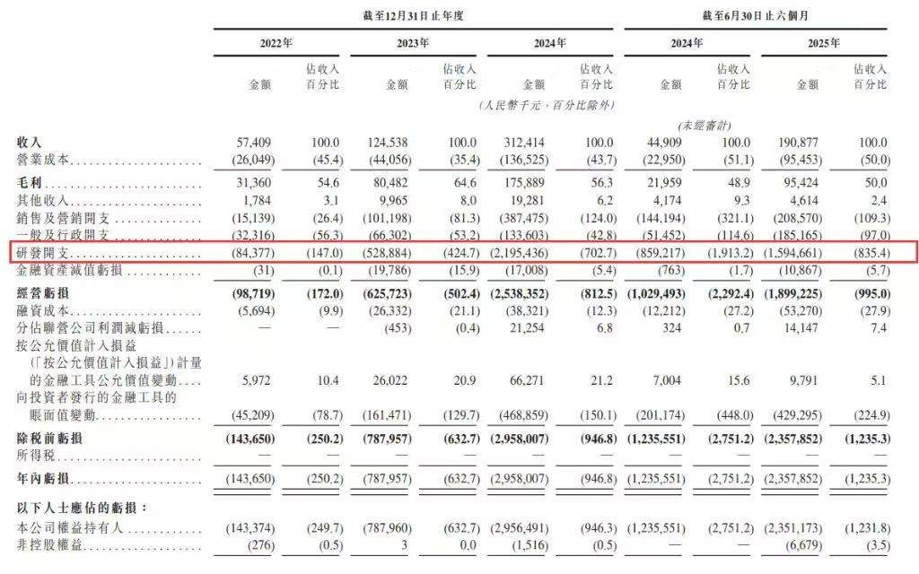 招股书显示,智谱和MiniMax,两家公司在过去三年里烧了近110亿元。其中,将近70%的支出用于模型研发。尤其是智谱,2024年研发投入高达21.95亿元,占当年总支出的约80%。