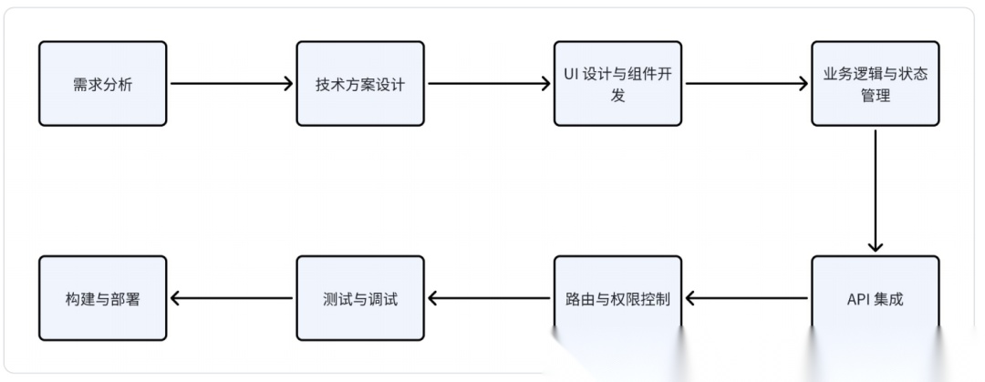 为了分析 Cursor 在业务开发中的实际提效,我们先拆解前端开发的典型流程,以及各环节的⼤致时间占⽐: