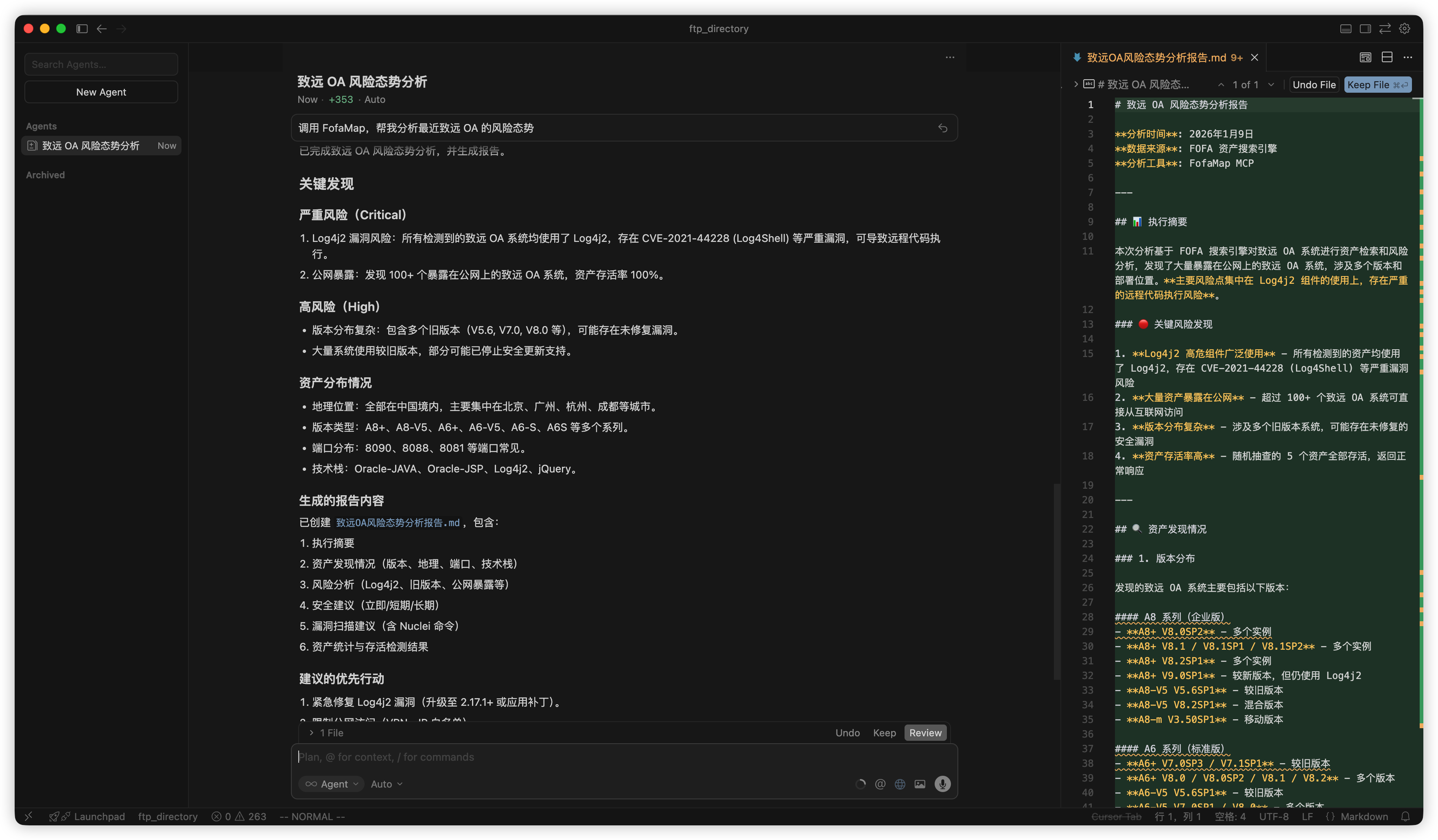 自动调用 FofaMap → 自动跑任务 → 自动总结报告