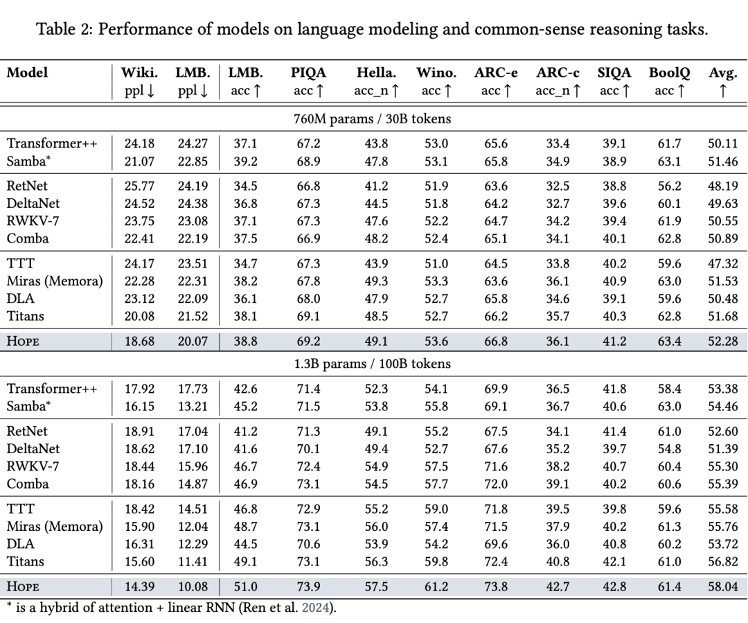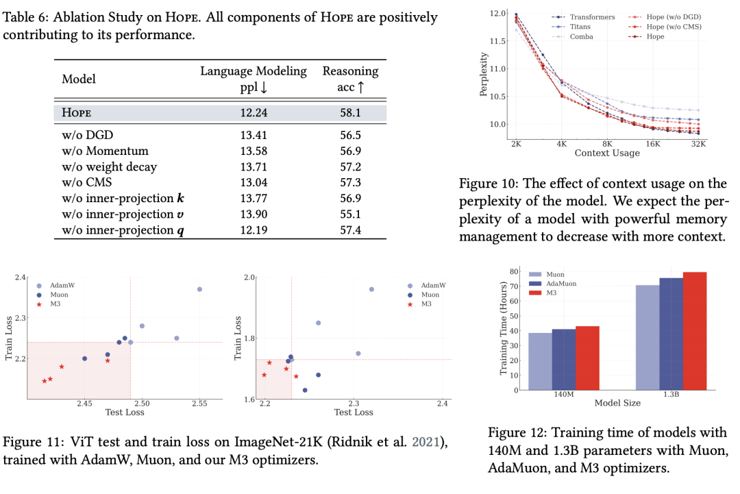 总体来看,HOPE在多个核心任务上都优于或显著超越现有对比模型,尤其是在持续学习和长上下文方面显示了明显优势。这体现了嵌套学习和连续记忆系统的潜力。