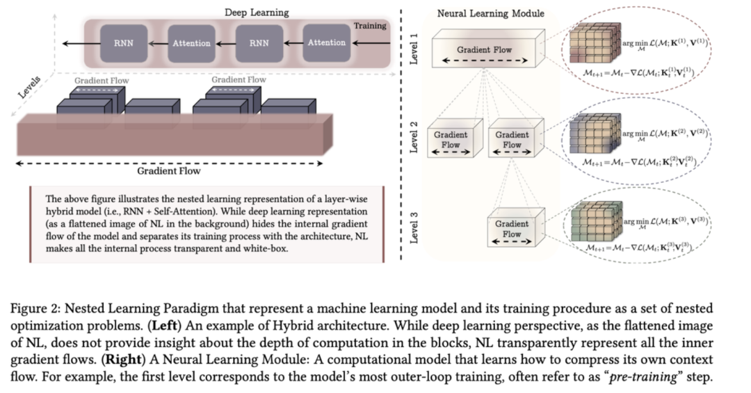 由此,谷歌的团队探讨了不同层级之间的知识传递方式,提出了嵌套学习。