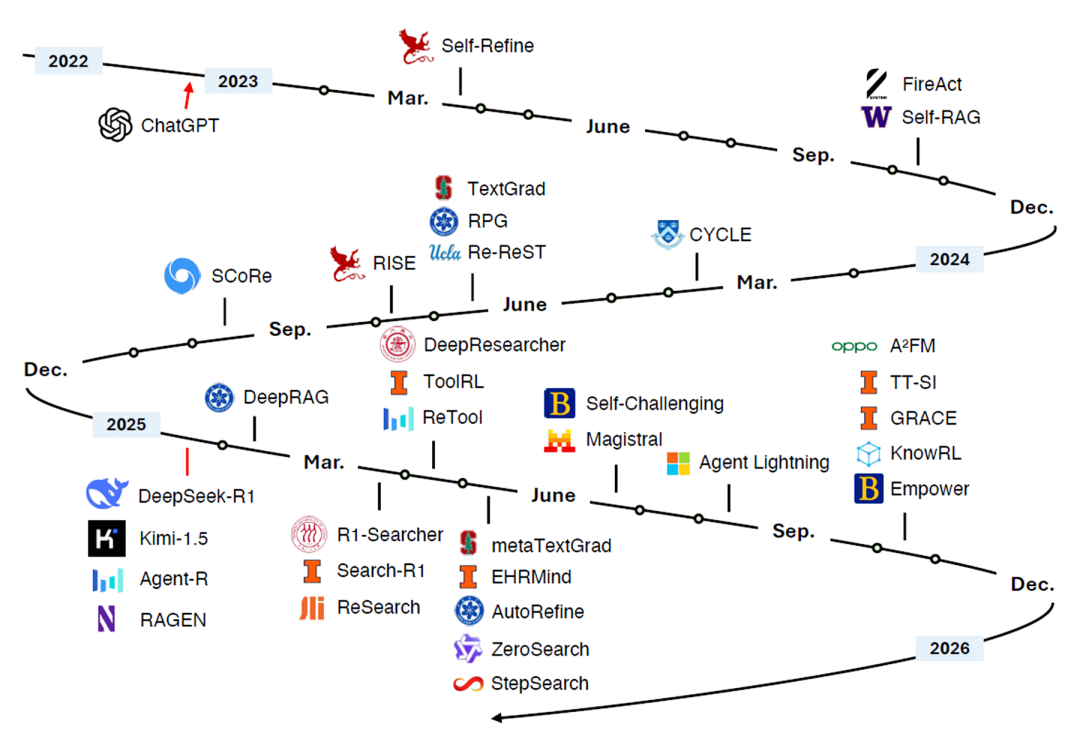 - 深度研究与信息获取:在需要多轮迭代搜索的RAG场景中,A1+T2的混合适应被广泛应用,智能体利用最终答案的正确性反馈(A1)来优化其RAG系统的检索策略(T2)。