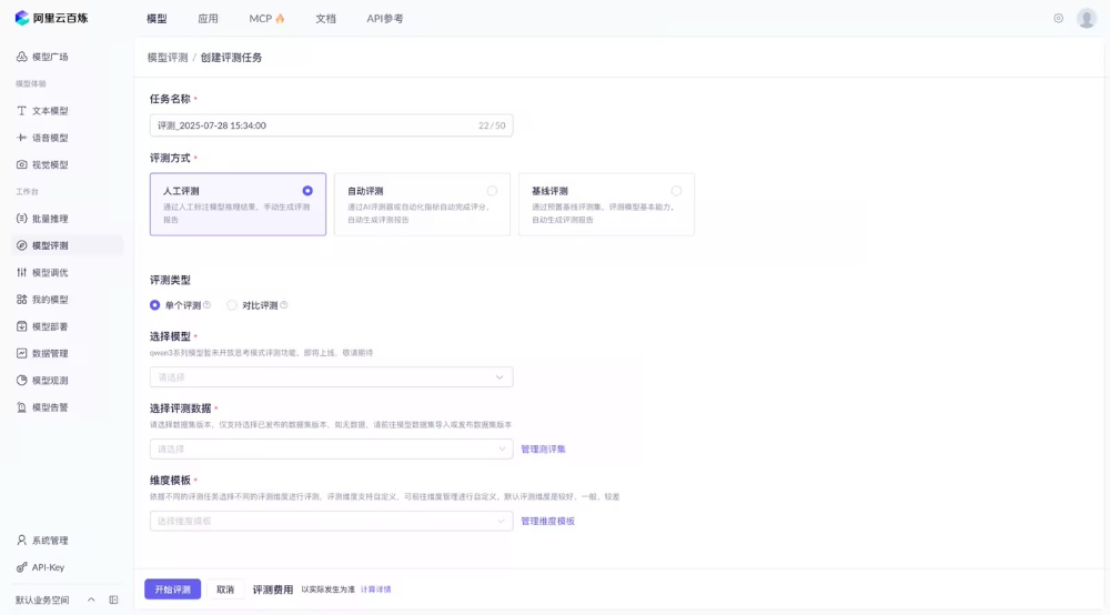 2.选择评测⽅式,开始评测