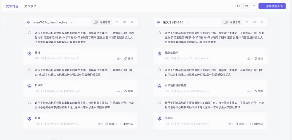 左侧为微调后的模型,右侧为原始模型,其对商品主体识别的能⼒得到提升。