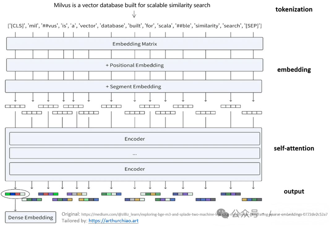 - 最终输出是一个 dense vector,本质上是对语义的压缩;