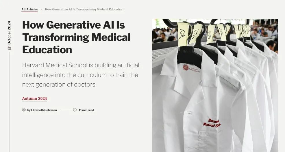 图8 哈佛医学院已将生成式AI纳入课程和临床实践(图源:哈佛医学院官网)