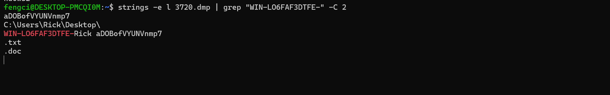 strings -e l 3720.dmp | grep "WIN-LO6FAF3DTFE-" -C 2