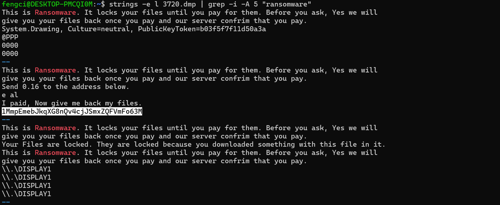 We've found out that the malware is a ransomware. Find the attacker's bitcoin address.