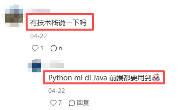 有行业从业者给出了精准回复:Python、机器学习(ml)、深度学习(dl)、Java、前端技术都会用到,属于“多技术融合”的岗位需求。