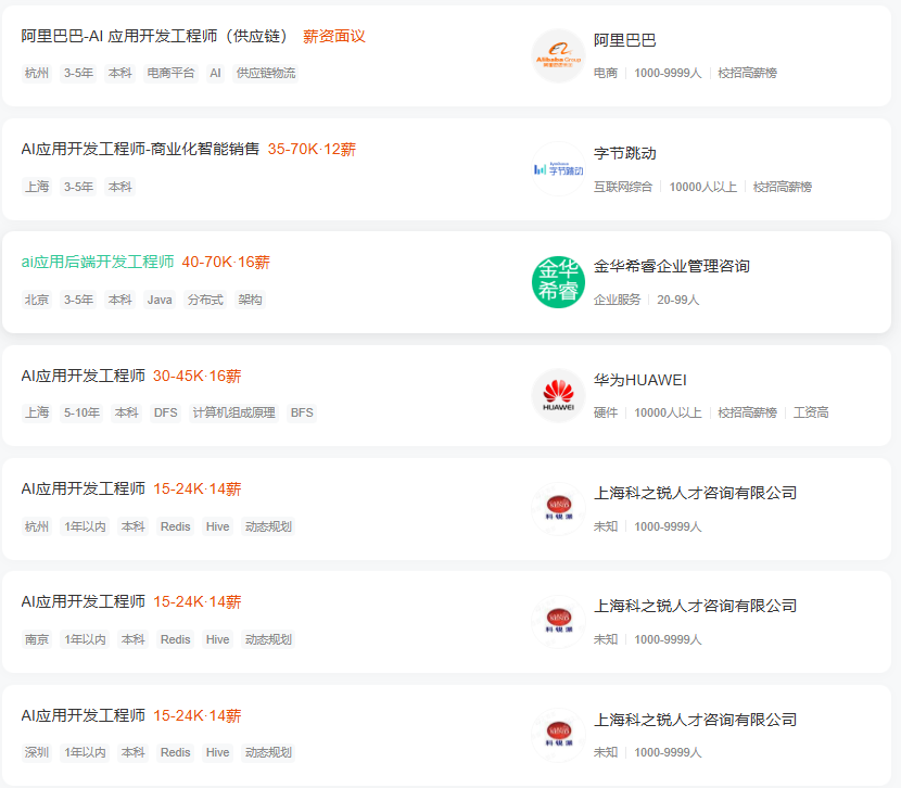 为了进一步验证这个趋势,我特意去主流招聘平台搜索了“AI应用开发”关键词,搜索结果的薪资水平和岗位要求都很直观,整理出来供大家参考: