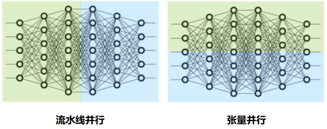 刚才数据并行,是把数据分为好几个部分。模型并行,很显然,就是把模型分为好几个部分。不同的GPU,运行不同的部分。(注意:业界对模型并行的定义有点混乱。也有的资料会将张量并行等同于模型并行。)