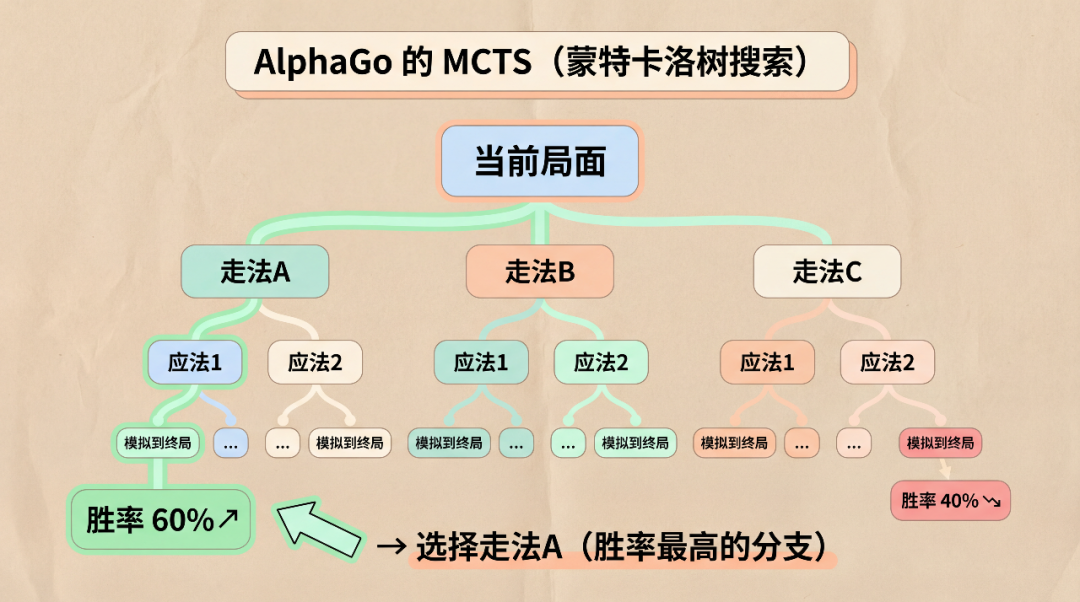 AlphaGo 的 MCTS(蒙特卡洛树搜索) 将这种能力形式化: