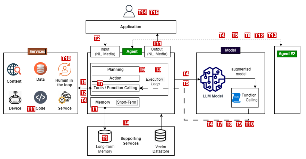 - T2:工具滥用:攻击者利用智能体集成的工具,执行未授权或有害操作。