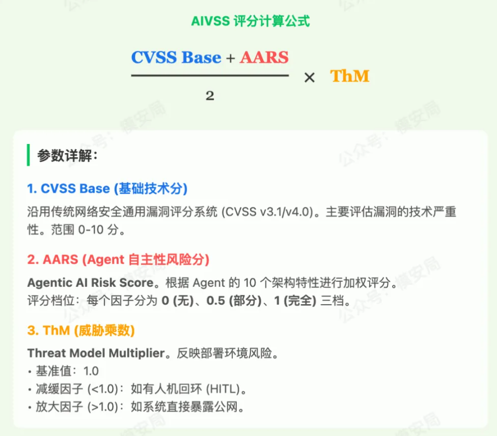 10 月,OWASP 发布AIVSS(Agentic AI 漏洞评分体系),尝试用传统网络安全方法论重构面向智能体的评估体系;