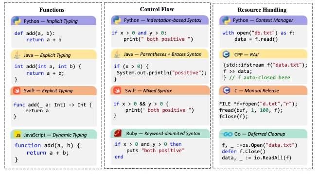 - C# / Java是“省心型”:强类型语言的语法结构严谨,信息密度大,模型用较少的数据和参数就能学得很好。