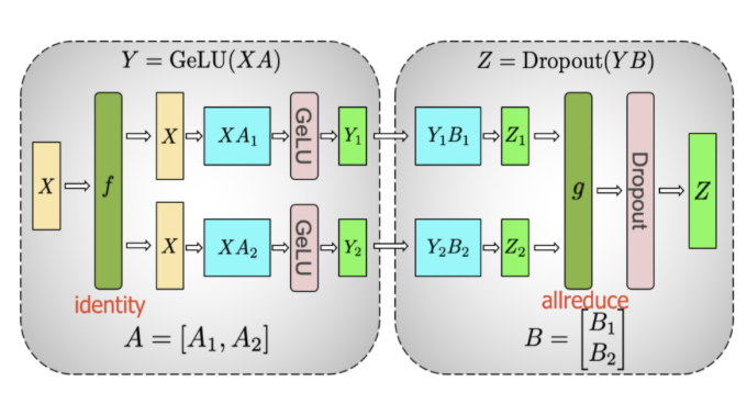 那么:[Y1,Y2]=[ GeLU(XA1), GeLU(XA2)]