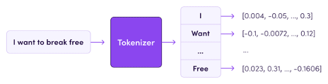 虽然通过word2vec给了每个单词一个词向量的编码,但是此种word-based tokenization会造成词表过大的问题,另外一种是char-based tokenization则会忽略一些拼写错误,而业内常用的是”subword-based****tokenization”,从最后的切分效果来看一个token大概是0.75个word。 **Byte-Pair Encoding(BPE)是最广泛采用的subword分词模型,**该模型也应用于GPT系列模型训练和推理中,事实上也取得了非常好的应用效果。图4是分词过程简单示意图,通过tokenizer过程,将句子中的每个token处理为向量。