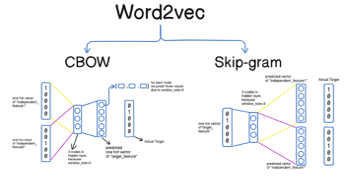 在互联网世界中当我们常需要计算两个单词之间的关联度,从最早的one-hot表示法(假设一部词典有N个单词,用一个n维向量来表示,每个单词占据某个位置,其他位置的值均为0,两两单词之间是正交的),逐步发展为word embedding表示法(翻译为“词嵌入”,即将一个单词嵌入到某一个空间的过程)。谷歌在2013年提出来的“word2vec语言算法模型”(一个2层的神经网络模型、输出结果为稠密向量)基于大量的文本的无监督学习为每个单词进行了word embedding的编码;如图3所示,word2vec编码也是包含了两个更早语言类编码模型(CBOW和skip-gram),词向量模型本身也是开源的,所以各个厂商都会有自己的词向量模型,也会在持续的实践中迭代词向量模型。