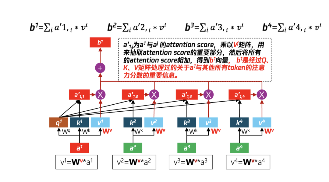 如图42所示,为Self-attention的过程,可以针对Q、K、V进行拆解: