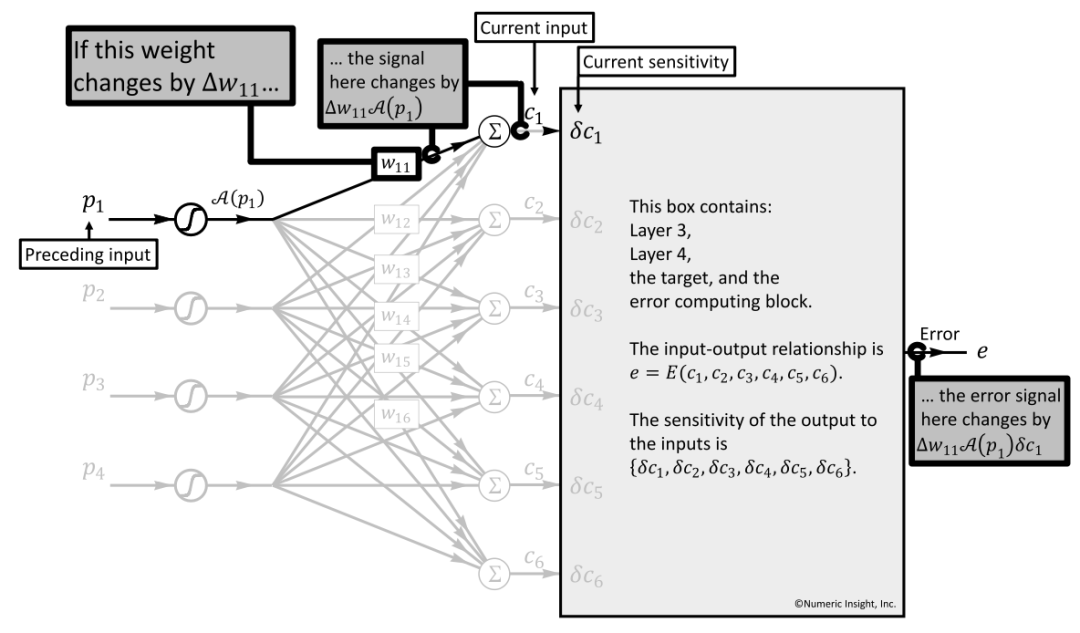 ③ w1,13 : w是指权重,上标3指层数编号;下标”1,1”中靠前的1是指与下一层的第1个神经元的连接权重,靠后的1是指自身在本层的排列顺序。