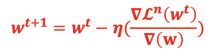 (3)计算梯度时,不再考虑对所有的结果的损失函数,而只针对该example的损失函数,其中∇Lnxn的偏微分: