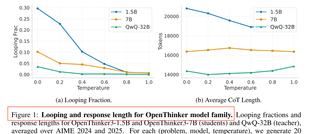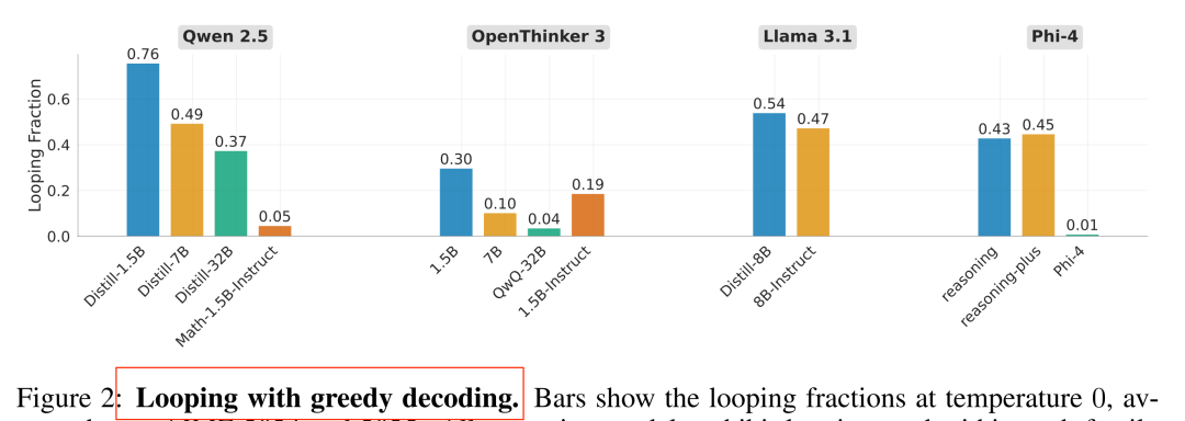 而,今天重点要聊的是:推理模型(DeepSeek-R1、OpenThinker 等) 在低温(temperatures)/贪心解码下极易循环,根源不是随机性太少,而是学得不对: