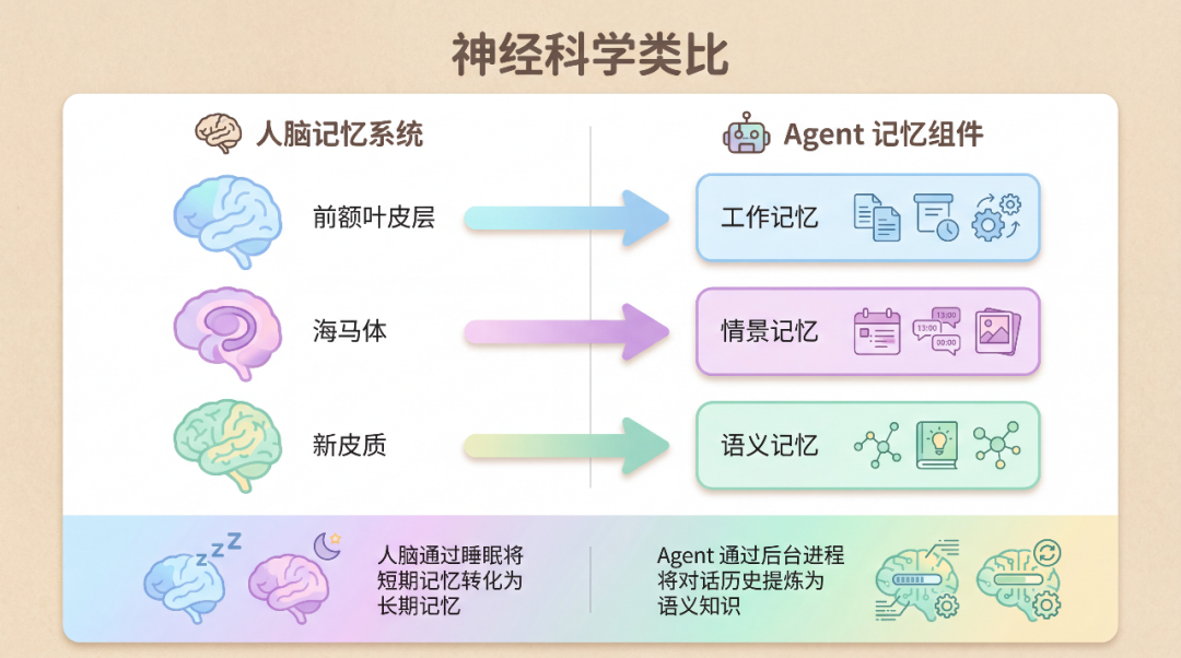 - Memory 让 Agent 从无状态走向有状态,从固定走向成长
