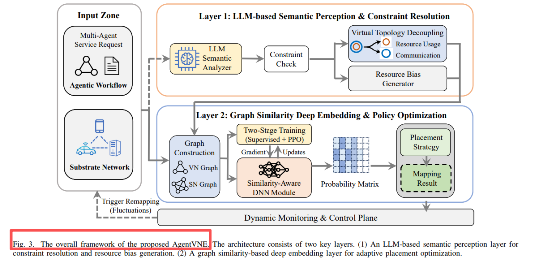 AgentVNE 的核心思想:把“语义约束”翻译成“拓扑偏好”,再用图神经网络做精细户型匹配。系统只有两层,却各司其职: