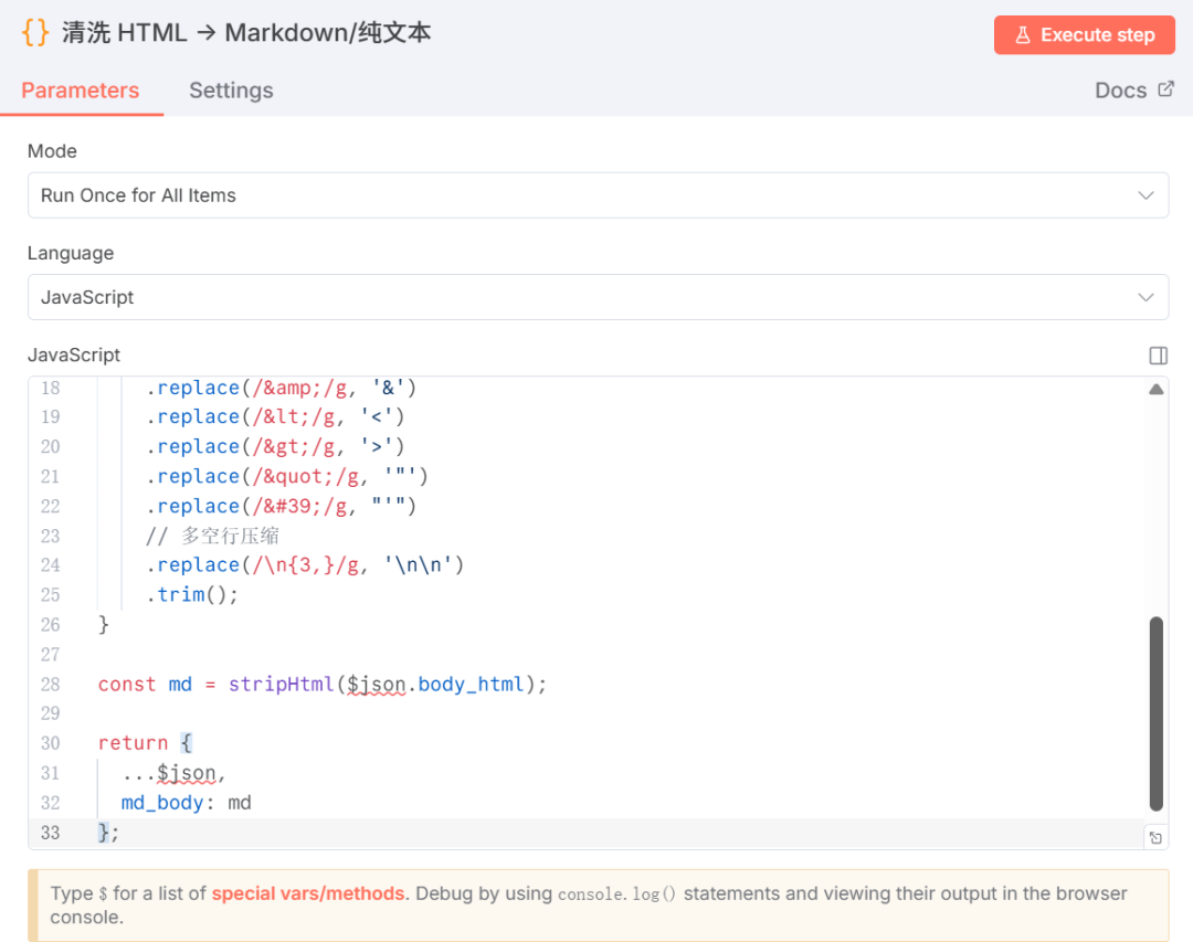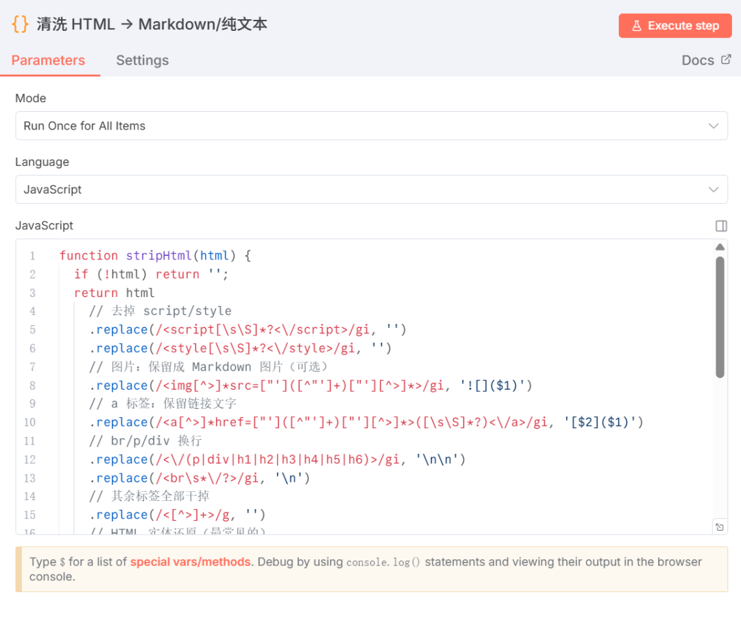 - 用 n8n 的 Code / Function 节点