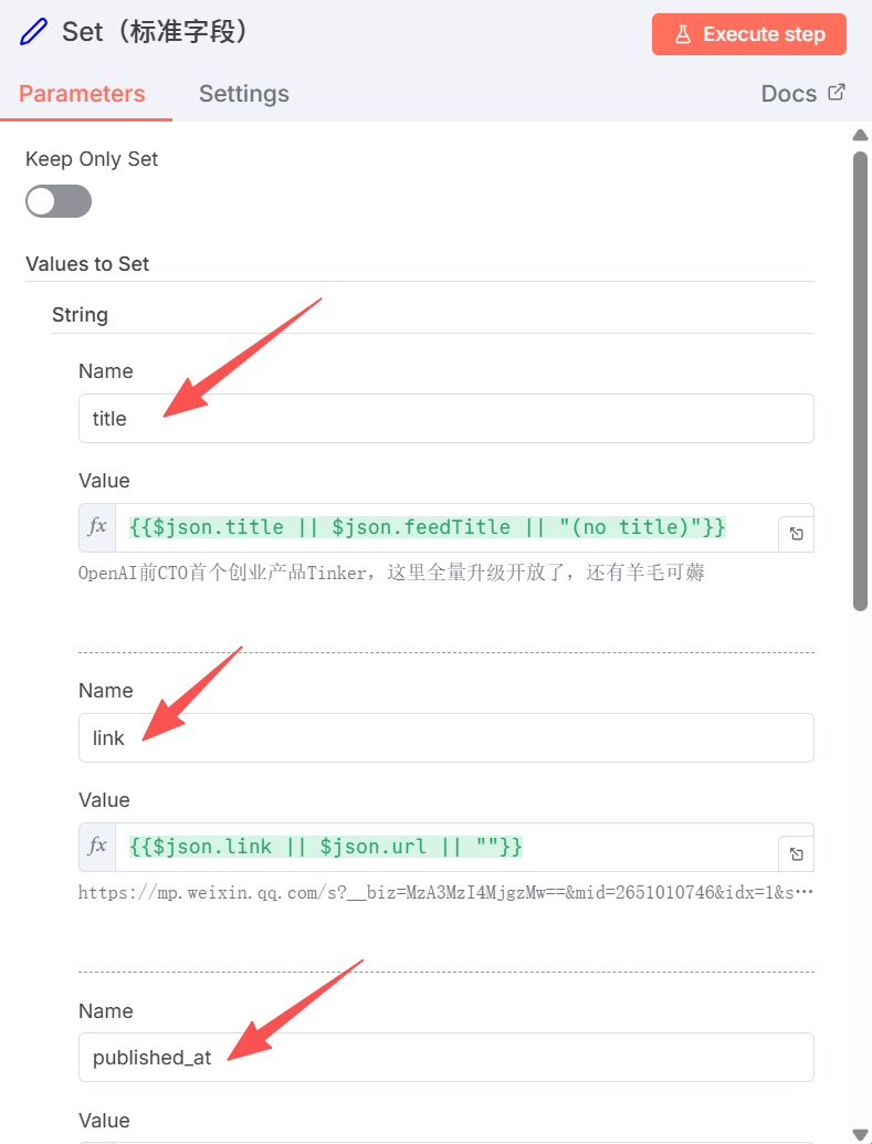 用 Set 节点统一字段