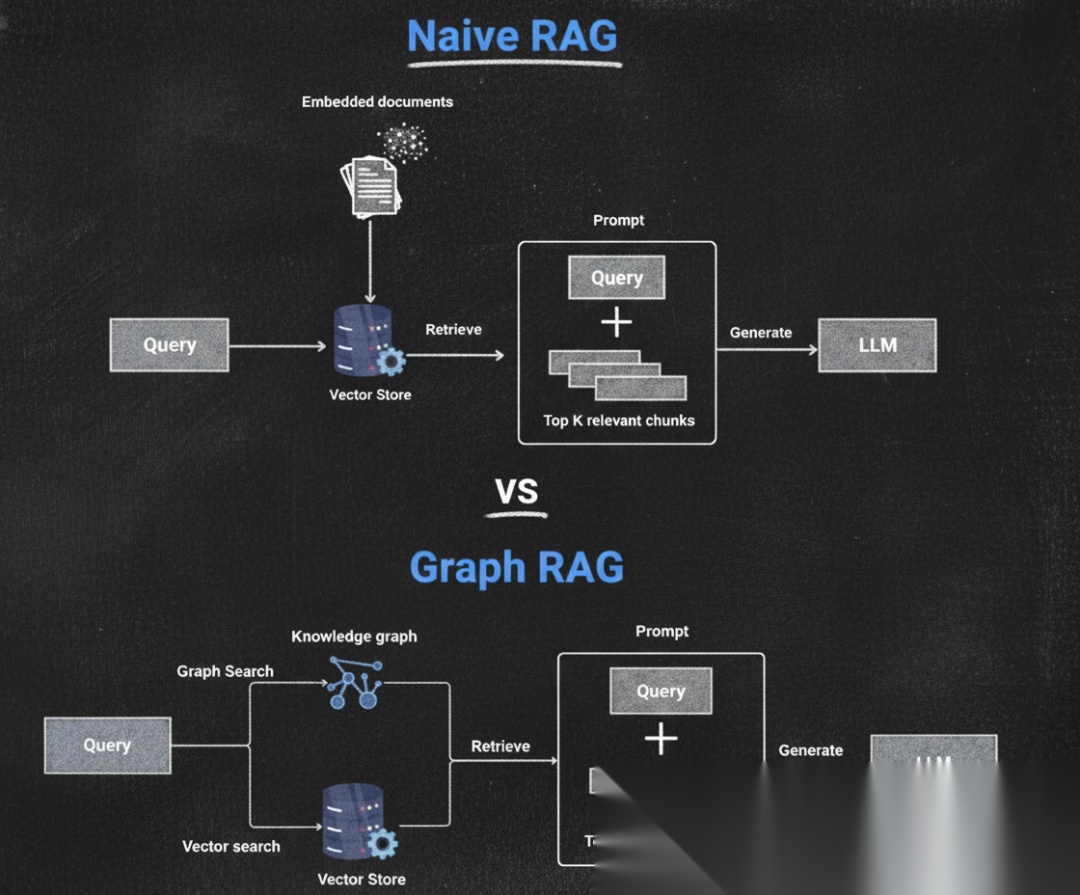 GraphRAG 是微软提出的融合知识图谱与 RAG 技术的创新方法。传统 RAG 依赖向量召回与文本匹配,虽擅长检索外部知识,但难以保证跨文档、跨版本的口径一致性。GraphRAG 通过引入知识图谱,将信息以节点和边的形式构建实体关系网络,让大模型不仅能检索文本片段,更能理解深层逻辑关联,使回答更全面一致。