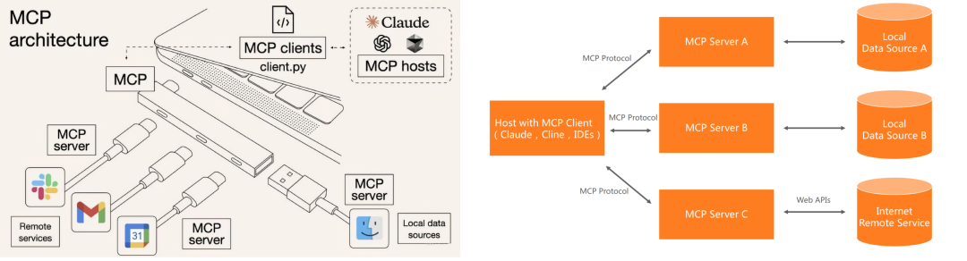 第一、MCP 是通用协议层的标准,类似于“AI 领域的 USB-C 接口”,定义了 LLM 与外部工具/数据源的通信格式,但不绑定任何特定模型或厂商。它将复杂的函数调用抽象为客户端-服务器架构,使得不同模型和工具之间的交互更加灵活和通用。