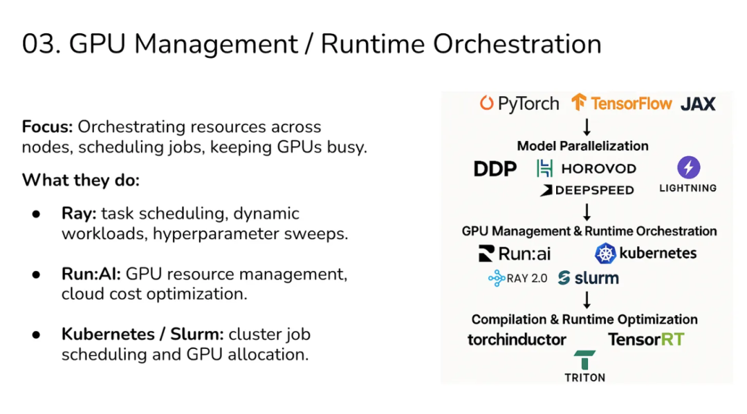 当你从单个模型训练任务扩展到多个任务时,就进入了 “编排” 层面。这时你要问的就不是 “我的注意力内核高效吗?”,而是 “为什么 30% 的 GPU 都在闲置?”