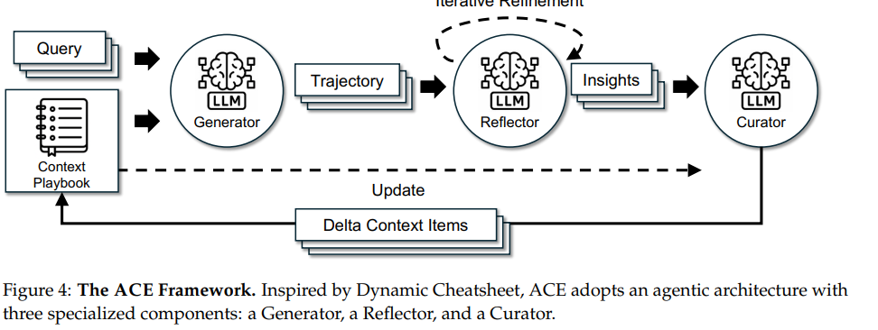 ACE (Agentic Context Engineering)框架的核心创新,是把上下文从 “静态提示词” 升级为 “动态演化的操作手册”(evolving playbooks)。它不压缩信息,而是通过结构化机制让上下文持续积累、优化,同时避免坍缩。