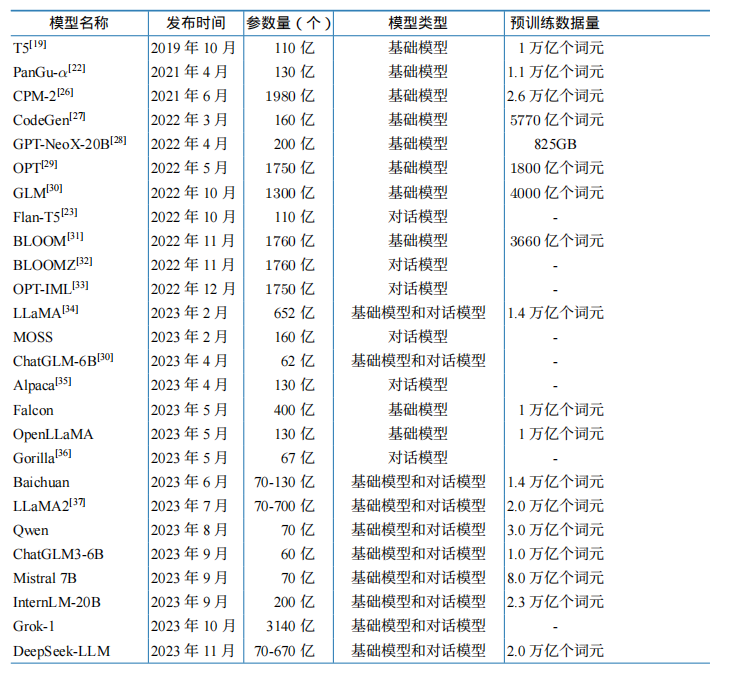 从 2022 年开始,大语言模型的数量呈爆发式的增长,各大公司和研究机构都在发布不同类型的大语言模型。