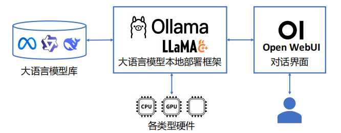 Ollama:一个开源的大模型服务工具,基于 llama.cpp,具备简洁的安装和使用流程。
