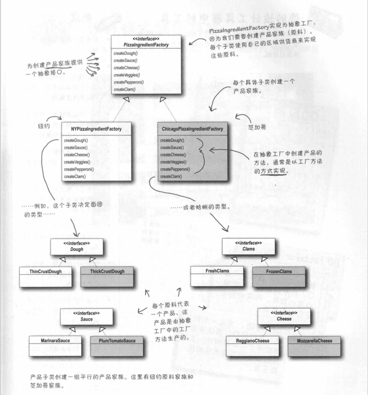 一连串的代码变化,我们到底做了什么?通过引入一个称为抽象工厂的新工厂类型,我们提供了为披萨创建原料家族的方法。