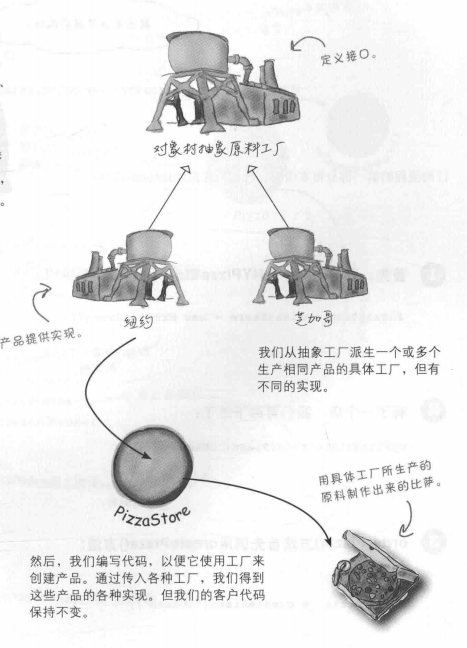 我们在点一个披萨时,先准备了原料,这些原料都是从抽象工厂获得的,然后再烘焙,切割,装盒。