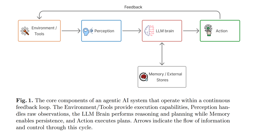 - 提出了一个详尽描述智能体化 AI 核心组件与反馈环路的清晰框架;