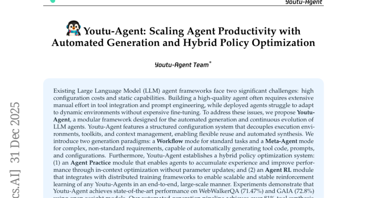 腾讯优图Youtu-Agent:AI代理实现自动化生成突破
