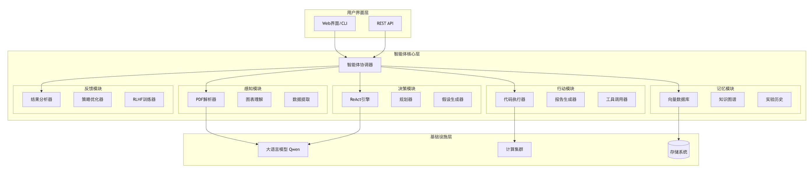 这个智能科研助手系统代表了AI在科学研究领域的前沿应用,通过将感知、记忆、决策、行动、反馈五大能力有机结合,为研究者提供了一个强大的AI协作者。随着技术的不断发展和完善,它有望成为推动科学进步的重要力量。