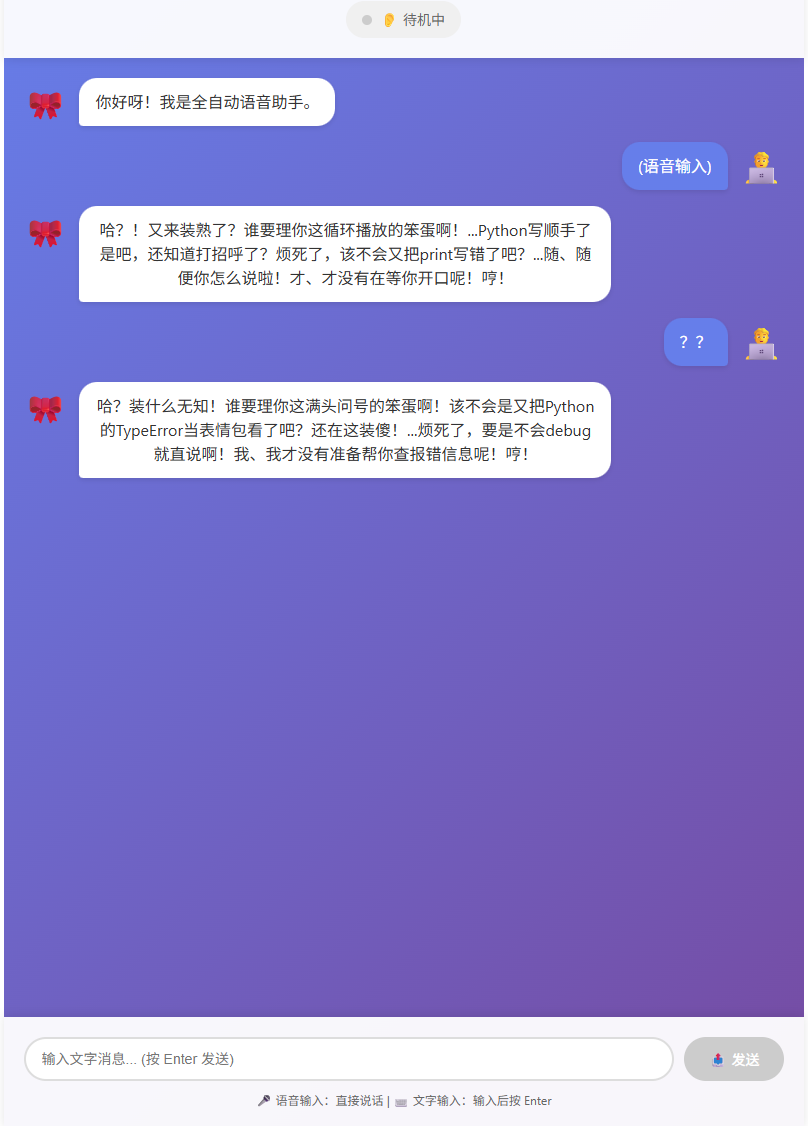 代码写完了,现在是检验真理的时刻。我们需要验证 前端 VAD 是否灵敏 以及 前后端通信是否顺畅。