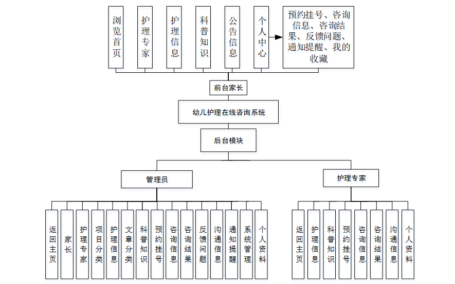 一般个人家长、护理专家和管理者都需要登录才能进入幼儿护理在线咨询系统,使用者登录时会在后台判断使用的权限类型,包括一般使用者和管理者,一般使用者只能对护理专家提供查阅和个别使用信息内容的查看,而管理者则能对多个信息内容提供使用。