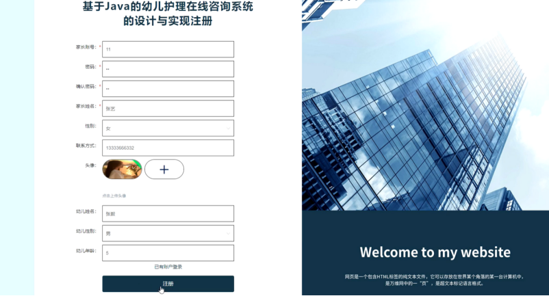 在“互联网+医疗”与“三孩政策”叠加的时代,家庭对0-6岁幼儿日常护理、突发症状判断与科学育儿知识的需求呈爆发式增长,传统线下儿保门诊已无法满足高频、即时、碎片化的咨询场景。将SpringBoot微服务架构、Vue3前端与MySQL数据库相结合,打造一套轻量级、高并发、可扩展的幼儿护理在线咨询服务系统,既能缓解基层医疗资源紧张,又能为家长提供7×24小时触手可及的护理支持,同时积累儿童健康大数据,为后续AI辅助诊断奠定基础,因此具有强烈的社会价值与市场空间。