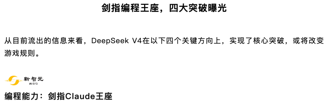 【V4 爆料亮点】 编程能力剑指Claude王座。